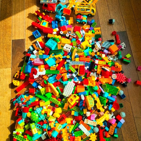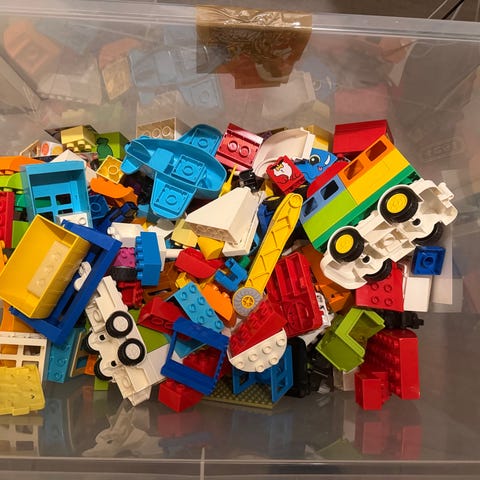 LEGO DUPLO klodser blandet lot i forskellige farver og former. Indeholder blandt andet køretøjsdele, figurer, vinduer, døre, træer og andre byggeelementer, som kan bruges til mange typer byggeri og rolleleg. Velegnet som supplement til eksisterende LEGO DUPLO samlinger eller som basis for fri leg med større byggeklodser til mindre børn.
