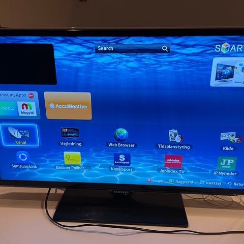 Rigtig fint 32'' Samsung Smart TV til sommerhus eller børneværelset. Der medfølger TV ophæng, egnede skruer og ravpluks, samt fjernbetjening og naturligvis ledning
