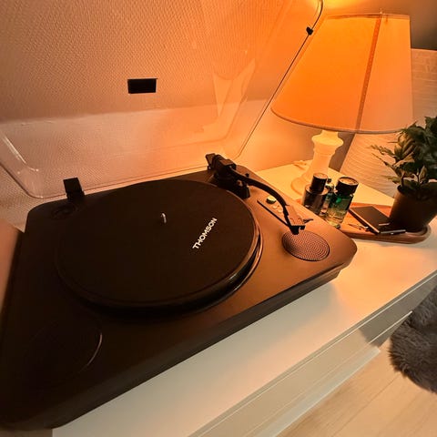 Studio 57 pladespiller i kuffertmodel i sort. Bærbar pladespiller med indbyggede betjeningsknapper. Kan også tilføjes med Bluetooth.