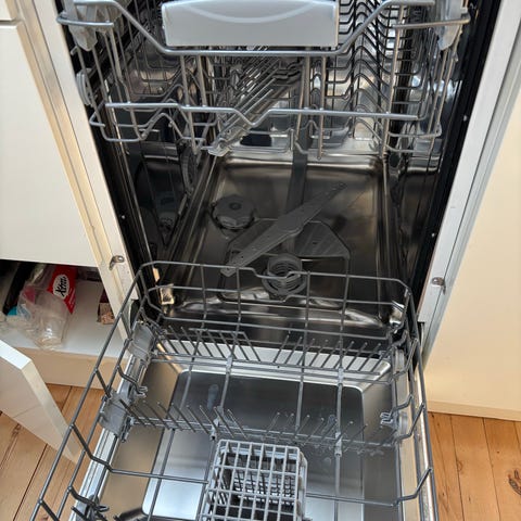 Maskinen har standard indretning med øverste og nederste kurv samt bestikkurv. Indvendig kar og spulearme er i rustfrit stål og plast.