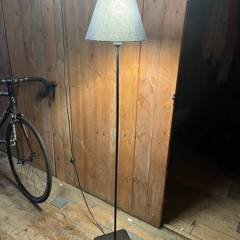 Lampens højde og arm gør det let at rette lyset derhen, hvor man har brug for det. Med fodkontakt på ledningen.
