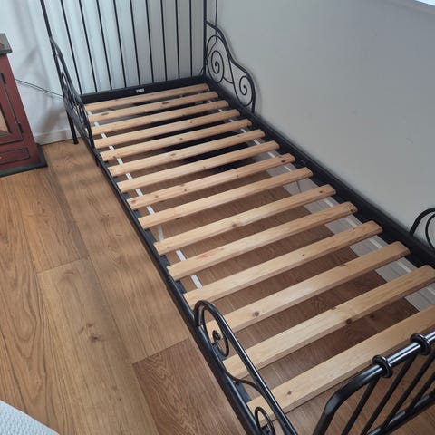 IKEA MINNEN seng med LURÖY lamelbund 80x200 cm metal sort