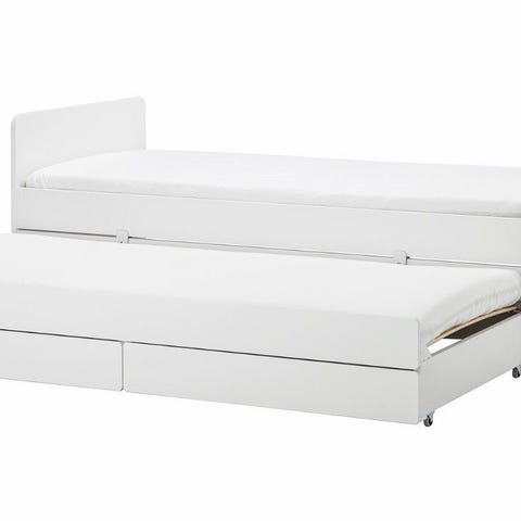 IKEA MINNEN seng med LURÖY lamelbund er en udtræksseng i metal med mål på 80x200 cm. Sengen har sort metalstel med dekorative gavle og en lamelbund af trælameller. Konstruktionen er egnet som juniorseng eller enkeltseng og kan forlænges efter behov. Sengen kan bruges med standardmadras i størrelsen 80x200 cm. Designet gør den egnet til børne- eller gæsteværelse, hvor der er behov for en pladsbesparende sengeløsning.