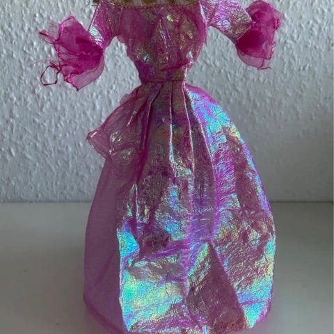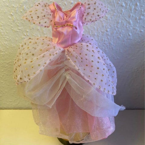 Ældre Barbie gallakjole lyserød pink, Ældre Elegant festkjole i fin stand