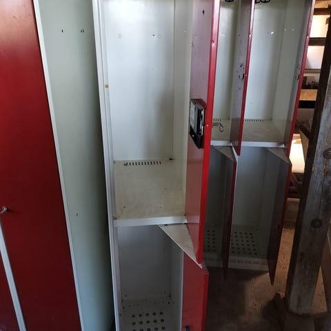 Lysegråt stål locker med to adskilte rum, nøgler haves til begge