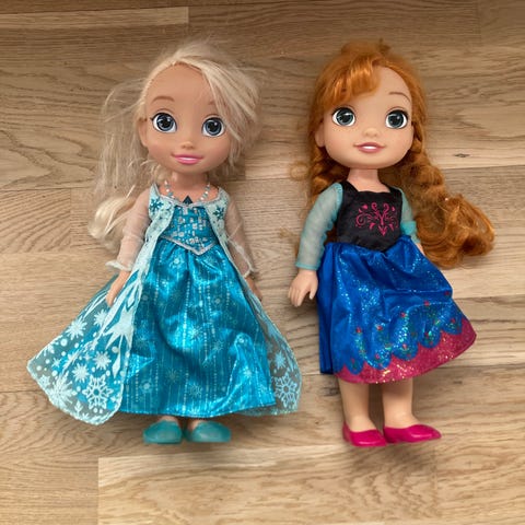 De to skønne piger fra Frostfilmene. Begge har et stort flot hår. De er ca. 27 cm høje og begge er i fin stand.