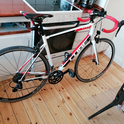 Cube racercykel til unisex med 62 cm stel og 28"/700c hjul. Cyklen har racerstyr, smal sadel og smalle dæk, egnet til landevejskørsel. Stellet er udstyret med fælgbremser for og bag. Pedalerne er flade med mulighed for brug af almindelige sko. Velegnet til motionskørsel og pendling på asfalt for en rytter, der passer til en stor stelstørrelse på 62 cm.