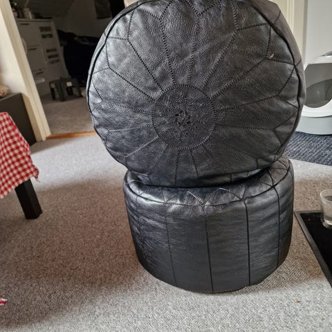 Bean bag til nyfødt foto, mrk. Baby Photo Props i læder, ø.106, h.40, ekstra krøyer kugler i stofpose og stativ (aldrig brugt) medfølger, kr. 1000,-