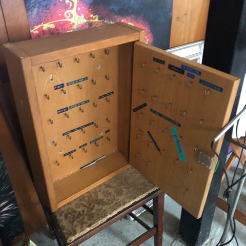 Vintage nøgleskab. Malet i skøn natur hvid maling. Nøgle og funktionel lås. Perfekt til entreen, til køkkenet som medicinskab eller til børneværelset. Giv et bud.