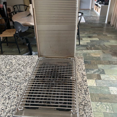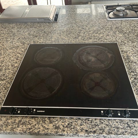 Både Gaggenau kogeplade og Gaggenau grill er også til salg. Det samme er marmorbordpladen med udskæringer.