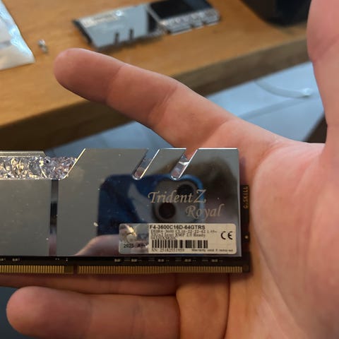 Helt ny G.Skill Trident Z5 RAM DDR5 32GB består af to 16GB-moduler (2x16GB) til stationære computere. de er bestilt ved Elgiganten den. 06-01-2026, men har først lige modtage dem. så der garanti på dem fra 08-03-2026.