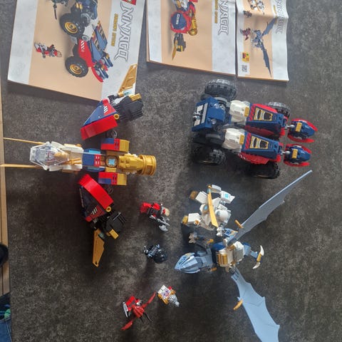 LEGO NINJAGO Ninja-ultrakombirobot med stor mech-robot, mindre mech-køretøj og flere NINJAGO-minifigurer. Sættet indeholder en detaljeret mech med bevægelige led og tilbehør samt ekstra figurer og våben. Der medfølger byggevejledning med illustrationer. Velegnet til leg og opbygning af NINJAGO-scener.