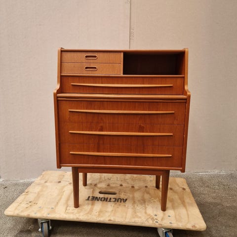 Smuk teak kommode med skriveplade