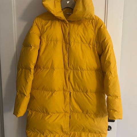 Stadig smuk og varm overgangsfrakke i 50% uld og med let foer i ærmerne. God men brugt og har stadig et par sæsoner at give af. Måler 103 cm fra skulder til knæ.
