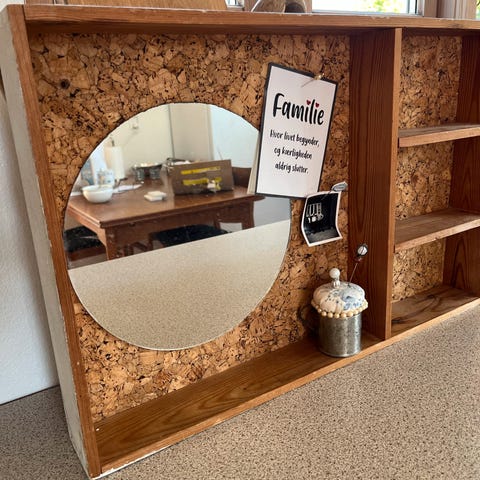 Giv din entré eller dit soveværelse et strejf af autentisk retro-charme med denne unikke spejlhylde.