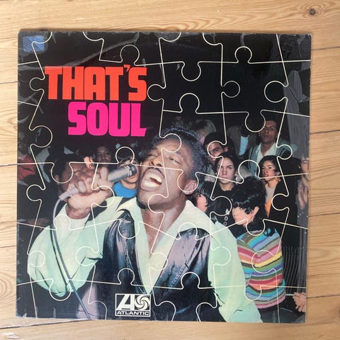 Atlantic That’s Soul lp. Vinylplade med soulmusikudgivelser fra forskellige kunstnere. Omslaget viser billeder og korte tekster om kunstnerne samt oversigt over andre udgivelser i serien. Egnet til afspilning på pladespiller med 33 1/3 rpm (lp-format).