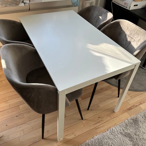 Bordet er i god stand, der er dog et par brugsspor på bordplanen.