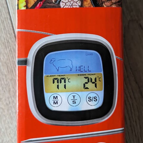 CookPerfect Comfort stegetermometer med Bluetooth-forbindelse. Termometeret måler kødets temperatur og beregner den forventede tilberedningstid. Enheden bruges sammen med CookPerfect app, som viser temperatur og giver alarm, når kødet er færdigt. Trådløs forbindelse via Bluetooth med angivet rækkevidde på æsken. Egnet til brug ved stegning og grillning, hvor der ønskes præcis kontrol af kødets kernetemperatur. Dansk design ifølge emballagen.