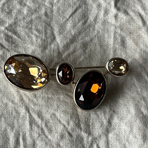 Broche, sølv, J. Aagaard, Oxyderet sølv broche med forgyldt pynt og syntetisk sten. - meget flot på en jakke på revers