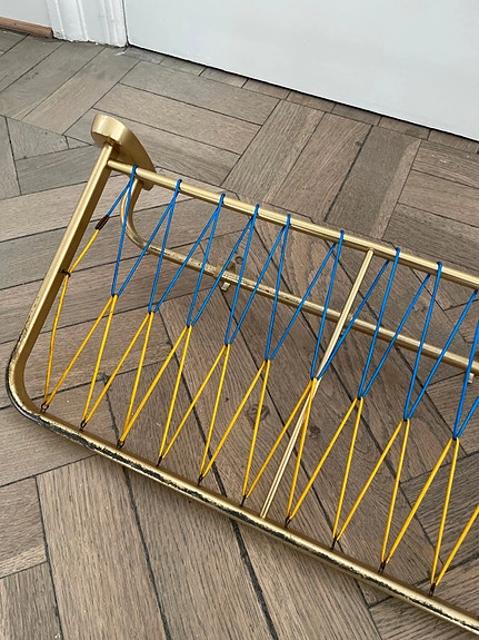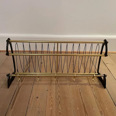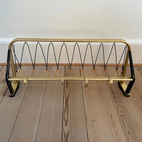Sort jernhattehylde med messing stænger fra 1960'erne (64cm lang)