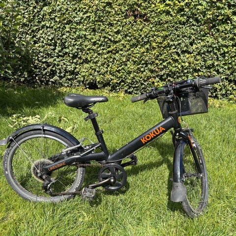 Kokua børnecykel 20" i rød farve. Cyklen har lige styr med gearskifter og håndbremser. Der er noget med gearene - den kan ikke gå ned i første gear.