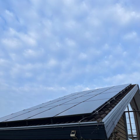 Delta Solivia 3.0 solcelleinverter med nominel effekt på 3,0 kW. Enheden er beregnet til brug i solcelleanlæg og omformer jævnstrøm fra solpaneler til vekselstrøm til elnettet. Frontpanelet har display og betjeningsknapper til visning af driftsstatus og indstillinger. Inverteren er egnet til fast montering indendørs eller beskyttet udendørs, afhængigt af installationskrav og gældende standarder. Tekniske data og godkendelser fremgår af typeskiltet på siden af enheden, herunder modelbetegnelse, serienummer og relevante certificeringer. Inverterene blev taget ned i 2018, og har lagt indendørs siden.