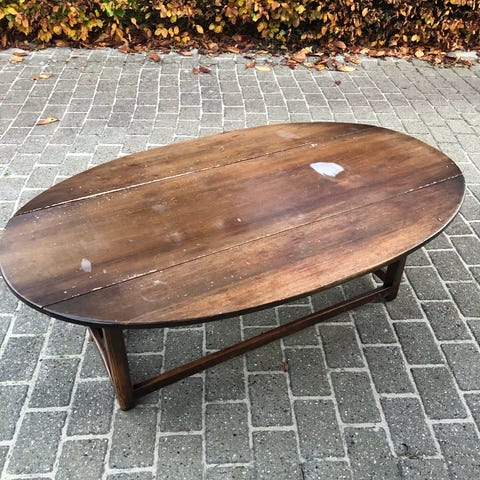 Bordet er stabilt og fremstår med brugsspor, som sikkert kan fjernes med en slibning mv.