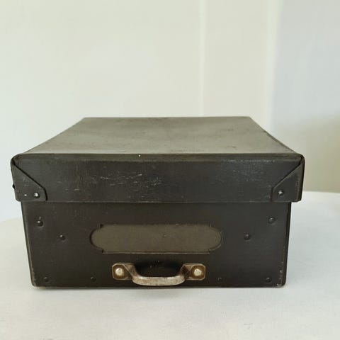 Stor sort arkiv opbevaringsbox / arkivkasse med nøgle. Brugt men i god stand. Måler H 23 cm. B 36 cm. D 26 cm. Afhentes i Aarhus.