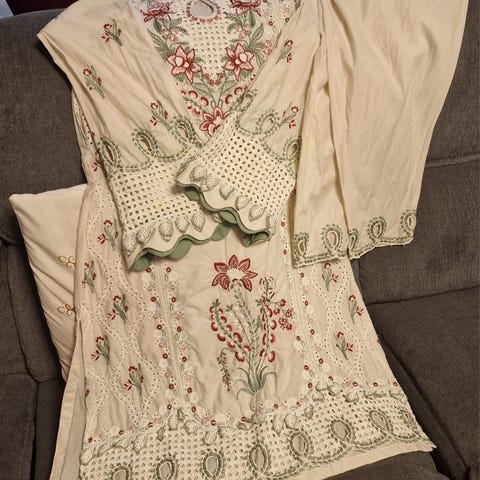 3 delt med kjole, bukser og tørklæde