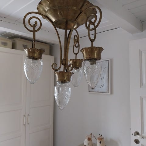 Antik loftlampe i messing fra 1920'erne