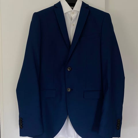 Sæt med jakke, buks, vest og skjorte. Passer til en på ca. 168 cm. Brugt 2 gange