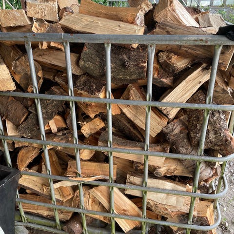 Brænde i jernbur, bestående af kløvede træstykker i blandede længder. Egnet til brug i brændeovn, pejs eller bålsted, afhængigt af træsort og tørhedsgrad. Leveres samlet i metalbur, som vist på billederne. 1 rm 500 kr. Læsses på trailer
