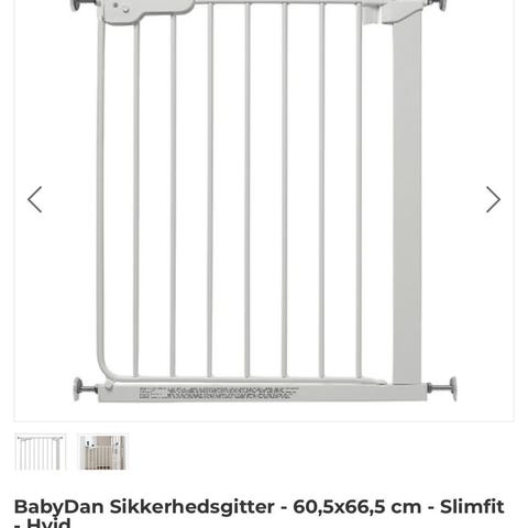 BabyDan sikkerhedsgitter i hvidlakeret metal. Gitteret består af fire sektioner, der kan vinkles, så det kan tilpasses åbninger som døre, trapper eller foran altandøre. Det har integreret låge med åbne-/lukkefunktion der nemt kan åbnes - også med en hånd.