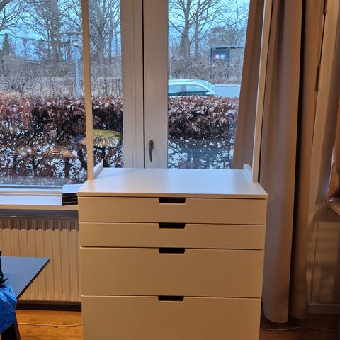 Ikea NORDLI kommode med 2 brede skuffer og 1 høj (som kan ses på billedet). Brugt men kan næste ikke ses, i rigtig god stand og klar til afhentning så hurtigt som muligt på Amagerbro.