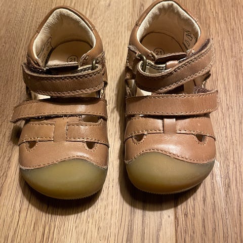 Det er en blød og fleksibel model i åndbart læder og vegetabilsk garvet skindfor. Den fleksible og skridhæmmende gummisål er god til børn, der stadig kravler lidt, men samtidig øver sig på at stå og gå på egne ben. Velcrobåndene kan justeres, så skoen kommer til at passe perfekt til det enkelte barns fod.