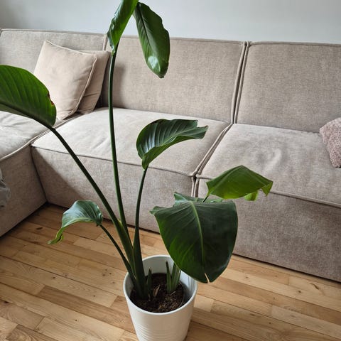 Fredslilje stueplante i potte. Planten har store, grønne blade og hvide blomsterstande. Egnet som indendørs plante i stue eller kontor. Trives bedst i indirekte lys og med jævn vanding, hvor jorden holdes let fugtig uden at være gennemblødt. Sælges uden plantestativet.