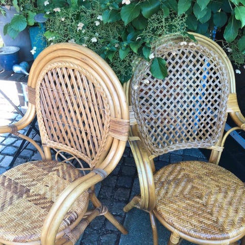 Flettet rattan stol med metalstel – retro / boheme stil