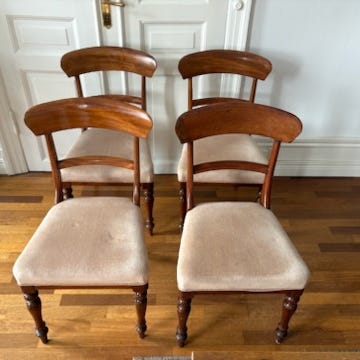 På den ene stols ben er der nogle mørke mærker - se billede.