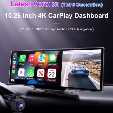 Carvillz CarPlay Android Auto transportabel multimedieskærm til bil. Enheden understøtter både Apple CarPlay og Android Auto og giver mulighed for spejling af smartphone-funktioner på skærmen. Skærmen fungerer som multimediecenter til navigation, musik, opkald og beskeder via tilsluttet telefon. Velegnet til biler uden indbygget CarPlay eller Android Auto-system. Tilslutning og strømforsyning sker via bilens eksisterende stik, jf. medfølgende vejledning og kabler (ikke synlige på billederne).