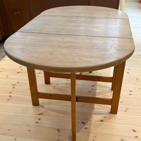 Når bordet er foldet sammen er det 98 cm bredt og 48 cm dybt. Hver plade er 60 cm, så når bordet er helt folde ud er det 168 cm. Bordet har en lille skuffe, der kan trækkes ud på begge sider.