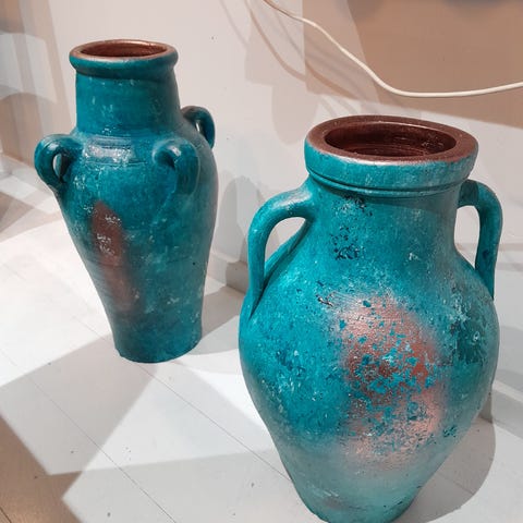 Stor amfora vase med hank i keramik, gråmeleret - 130 cm. høj
