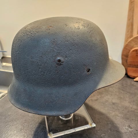 Sælges tysk camo hjelm, flot kopi malet . Original hjelmenskal. Str Q64.