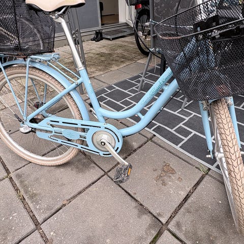 Principia børnecykel med 24" hjul. 7 indvendige gear. Cyklen har fået nyt bagdæk. Alt virker og cyklen er velholdt - men har synlige brugsspor, hvilket er afspejlet i prisen. Velegnet til hverdag og fritidskørsel.