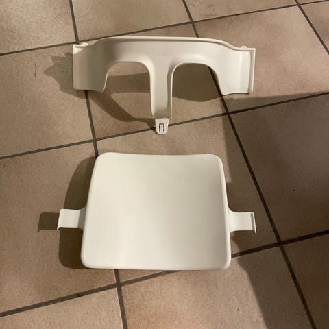 Stokke højstol tilbehør i form af en plast frontbøjle i beige farve. Frontbøjlen er designet til montering på en Stokke højstol for at give ekstra støtte og afskærmning foran barnet. Velegnet som reservedel eller udskiftning af eksisterende frontbøjle på kompatible Stokke højstole. Farve og materiale er plast i en lys beige nuance.
