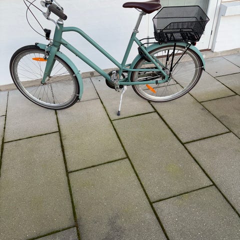 Batterilygter, støttefod, ringklokke, skærme på begge hjul.