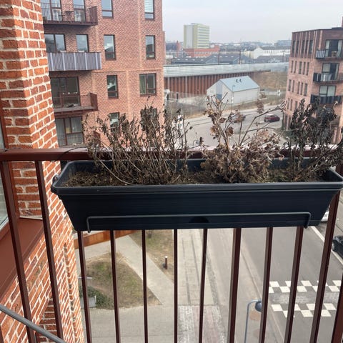 Plantekrukker til altan i grå plast. Sættet består af altankasser og runde krukker med kroge, der kan hænges over gelænder eller ryglæn. Velegnet til blomster eller krydderurter på altan, terrasse eller altangelænder. Materialet er plast, som er let at rengøre og flytte rundt på. De store grå er 38 cm lange og 18 cm brede og 18 cm dyb. De 2 runde er 17 cm dyb og 17 cm i diameter alt i kraftig plast og hul i bunden. Der er 2 stk af hver.
