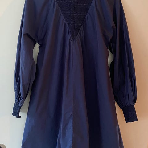 Etuikjole, Carven, str. M, Blå, Mix, God men brugt, Blå kjole med draperinger og skrå snit i str M/38