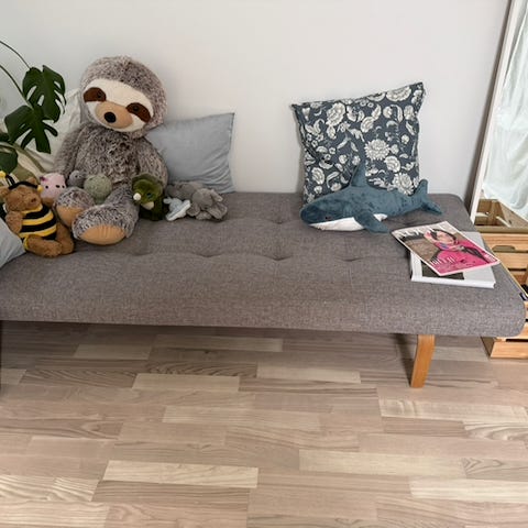 Daybed med tilhørende nakkepude, købt i Ilva. Fin stand uden synlige brugsspor og meget komfortabel. Sælger den pga. pladsmangel.