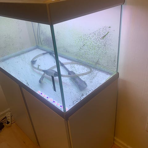 Akvarie medfølger lys og termostat.