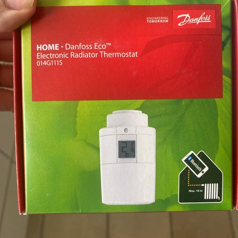 Danfoss Living Eco elektronisk radiatortermostat i hvid. Termostaten har digitalt display og betjeningsknapper på toppen til indstilling af temperatur og funktioner. Egnet til styring af rumtemperatur i boliger, kontorer eller andre rum med vandbårne radiatorer. 3 stk sælges for 300kr. Fast pris.